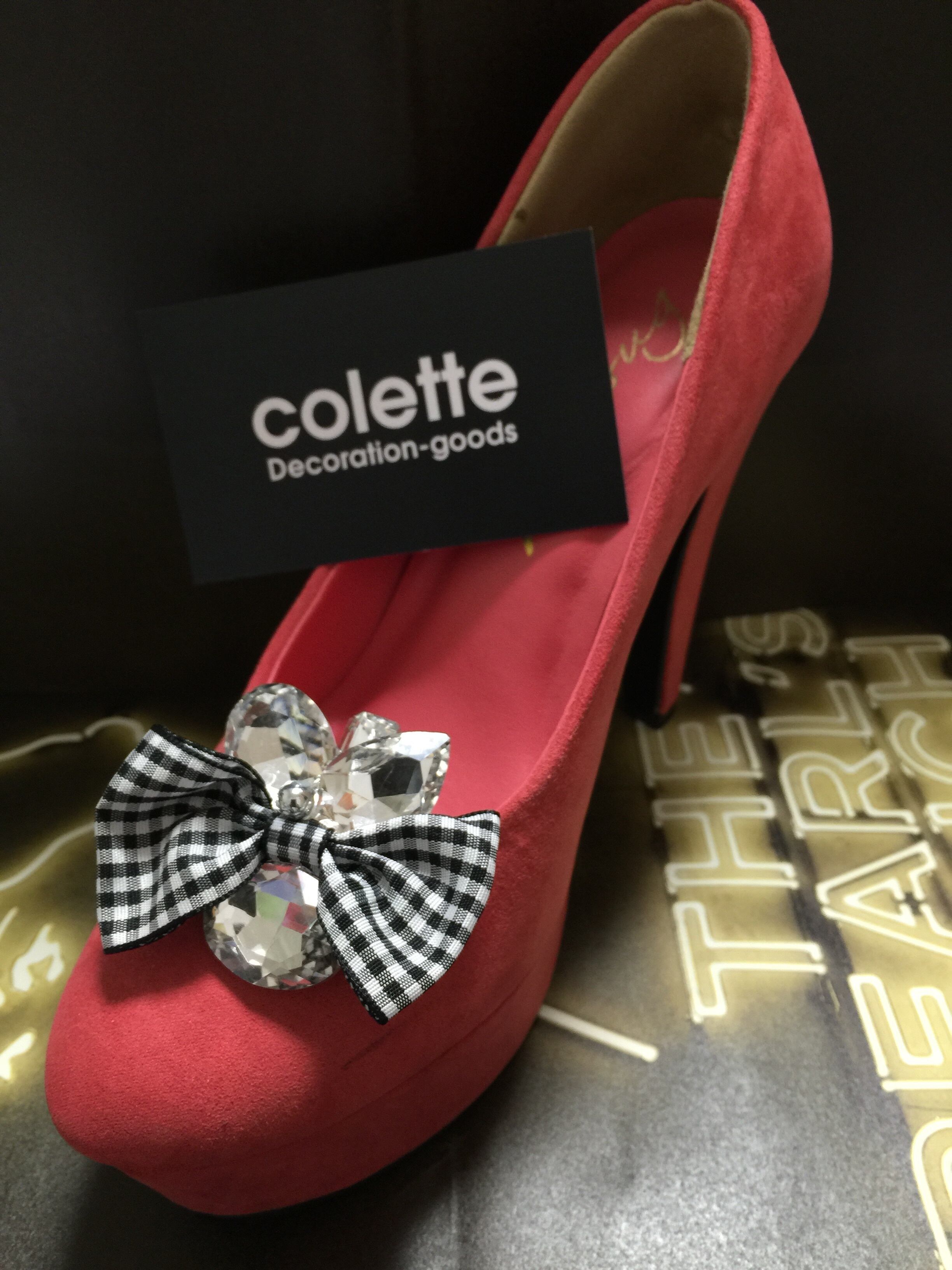 リボン×ビジュー◆シューズクリップ◇グランチェック