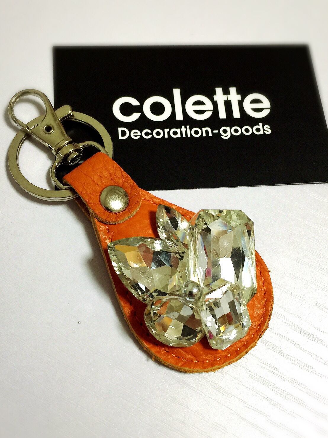 ジュエリーストーン盛り◆本革キーホルダー◇orange
