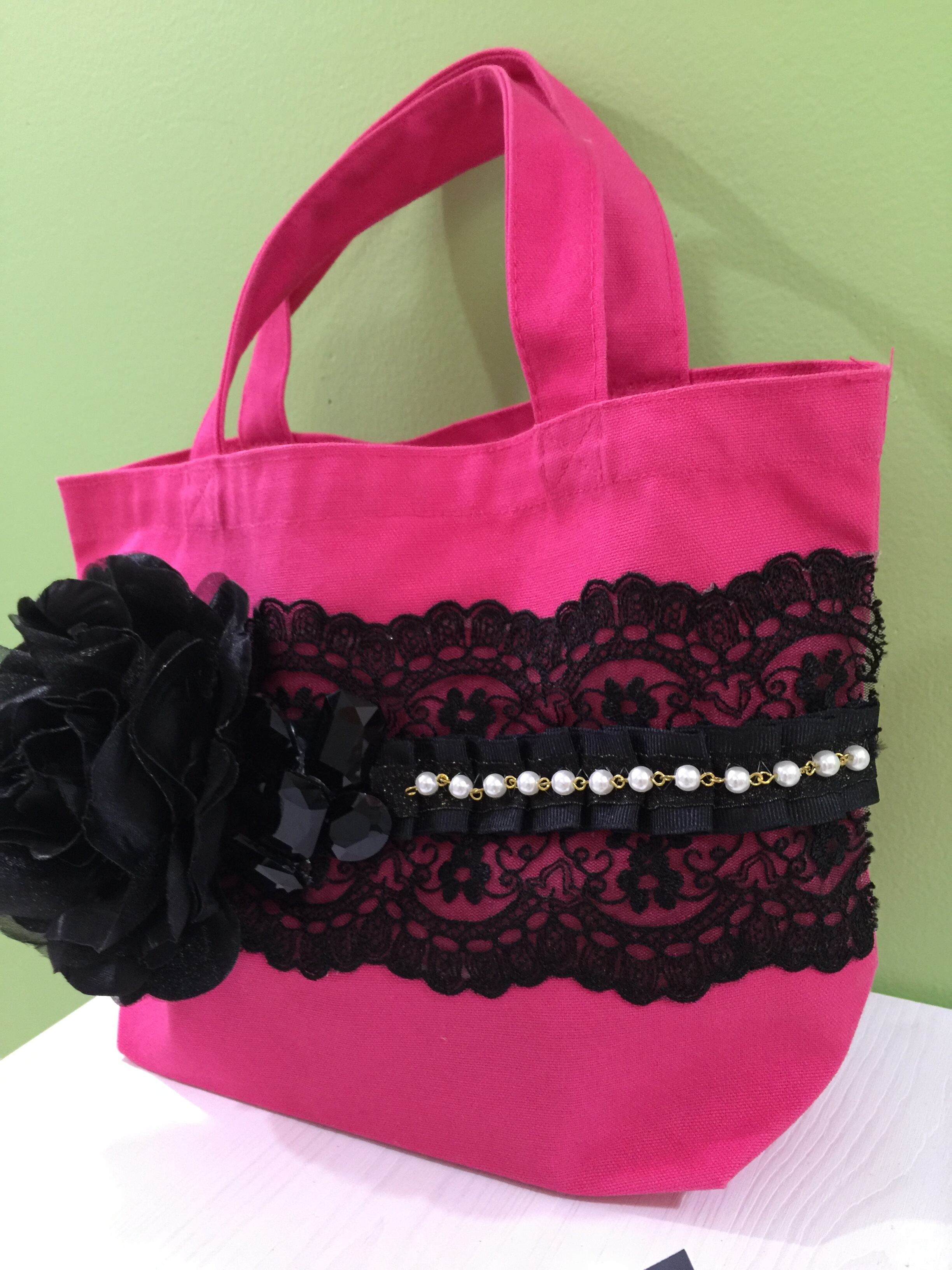 ファブリックデコ◆コットントート◇P-黒ローズ×黒レース