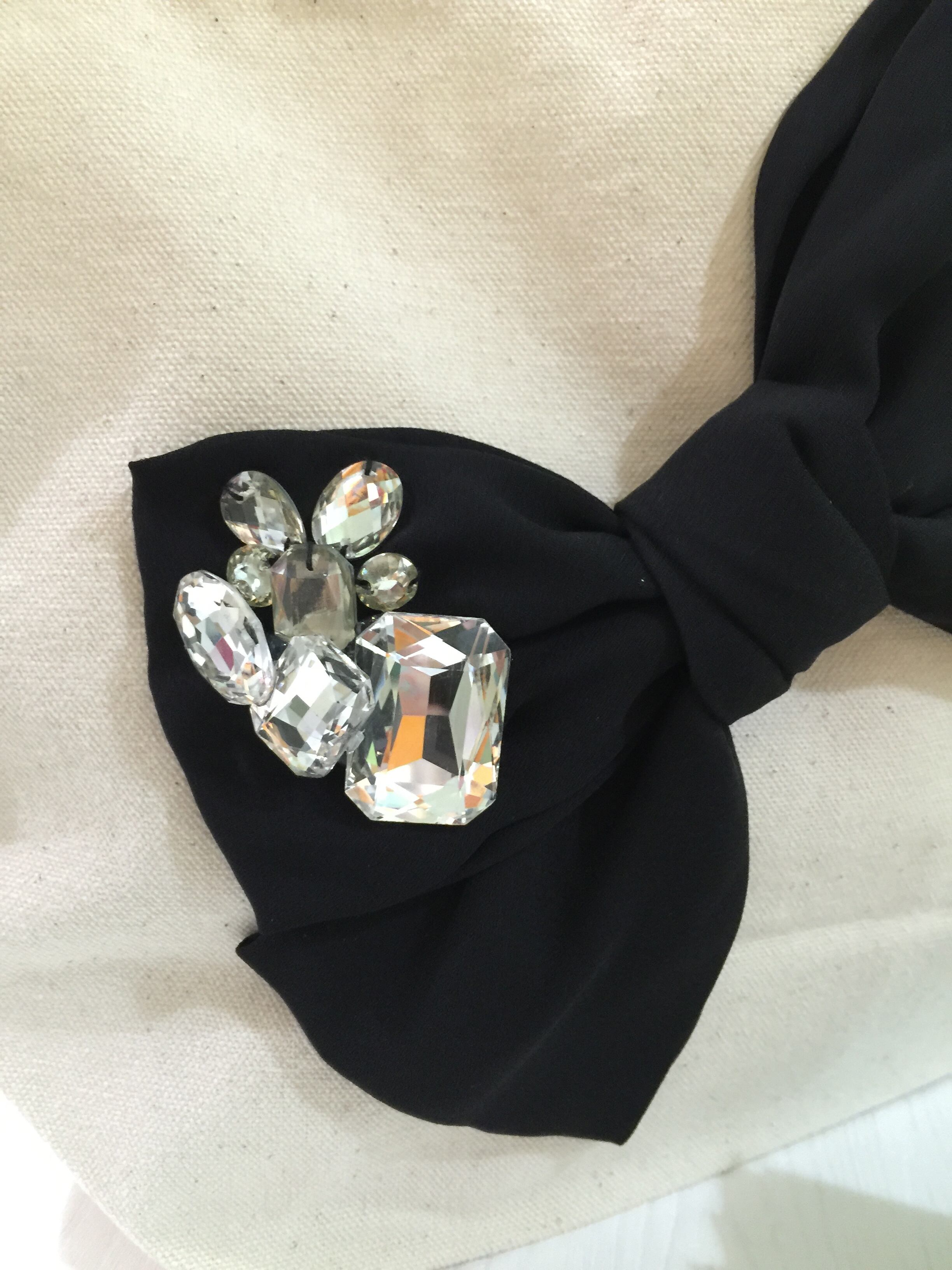 ファブリックデコ◆コットントート◇NA-黒リボン×ビジュー